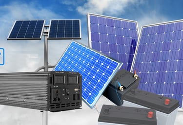 Panels, inverters, batteries, and all solar essentials sourced globally.